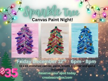 This is a guided workshop and includes all supplies (11x14 stretched canvas, paint, brushes, glitter and gems)